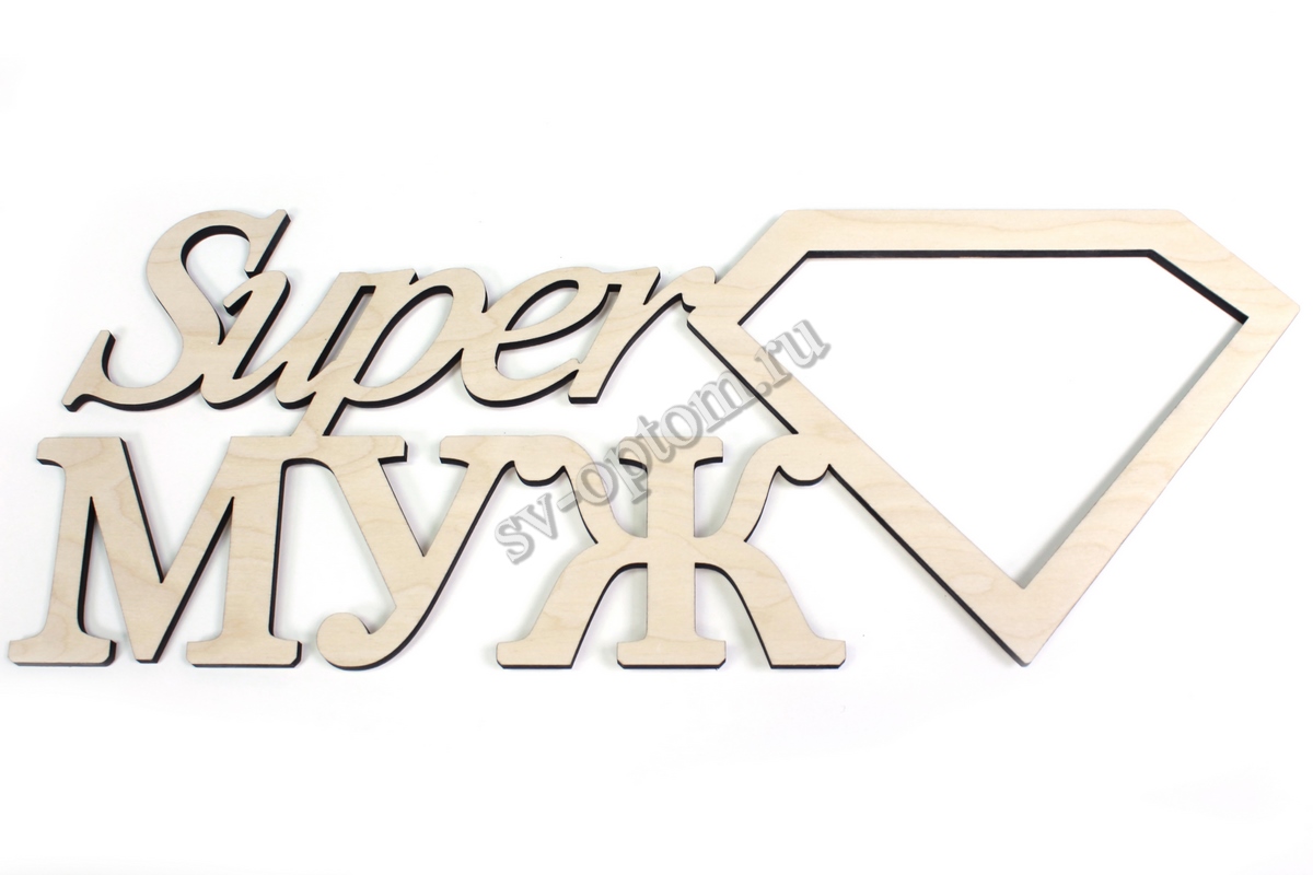 Деревянные слова для фотосессии "Super Муж" 17х44см. См. вкладку "Подробнее", цвет под заказ арт. 004-017