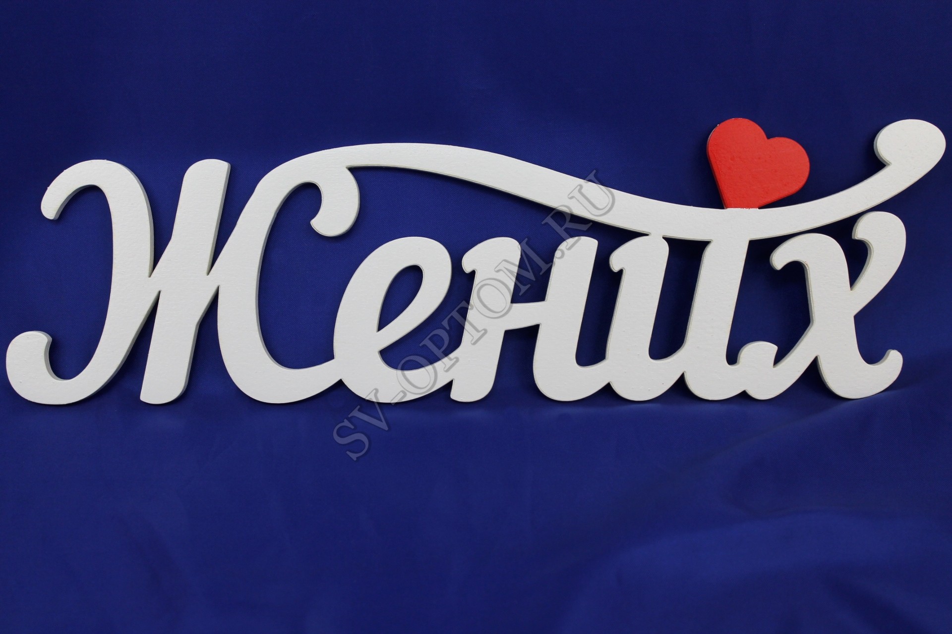 Деревянные слова для фотосессии "Жених" (13х40см.). Укажите цвет в примечании к заказу. См. Подробнее. арт. 004-007