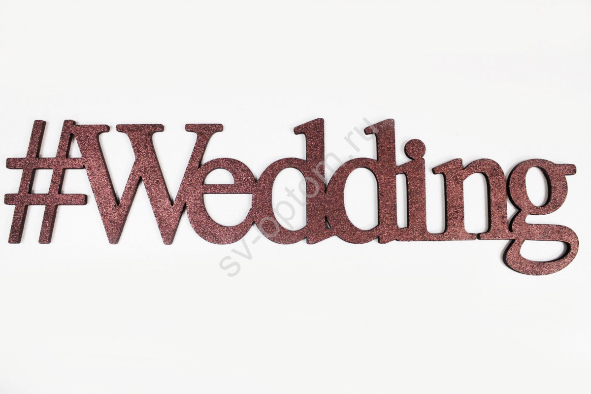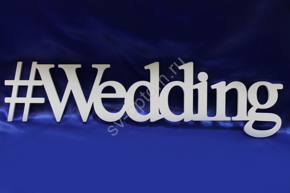 Деревянные слова "#Wedding". Дерево, 67х14см, толщина 6мм, любой цвет под заказ, см. Подробнее, арт. 004-445
