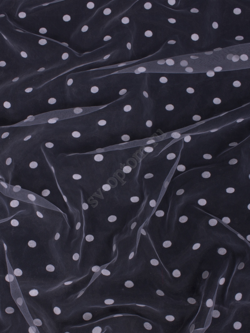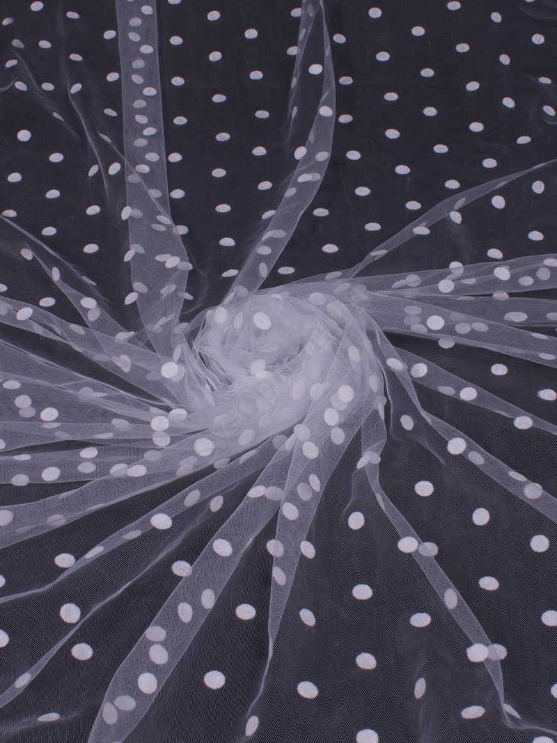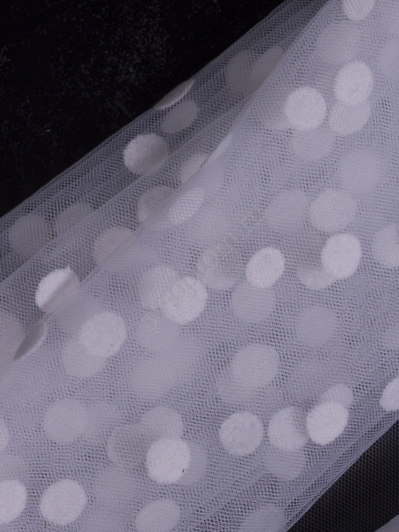 №1 белый.Еврофатин в горошек.Цена за 1м погонный. Ширина 150см. Диаметр горошин 1см