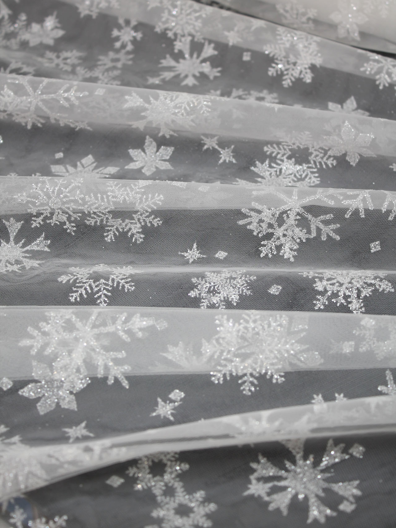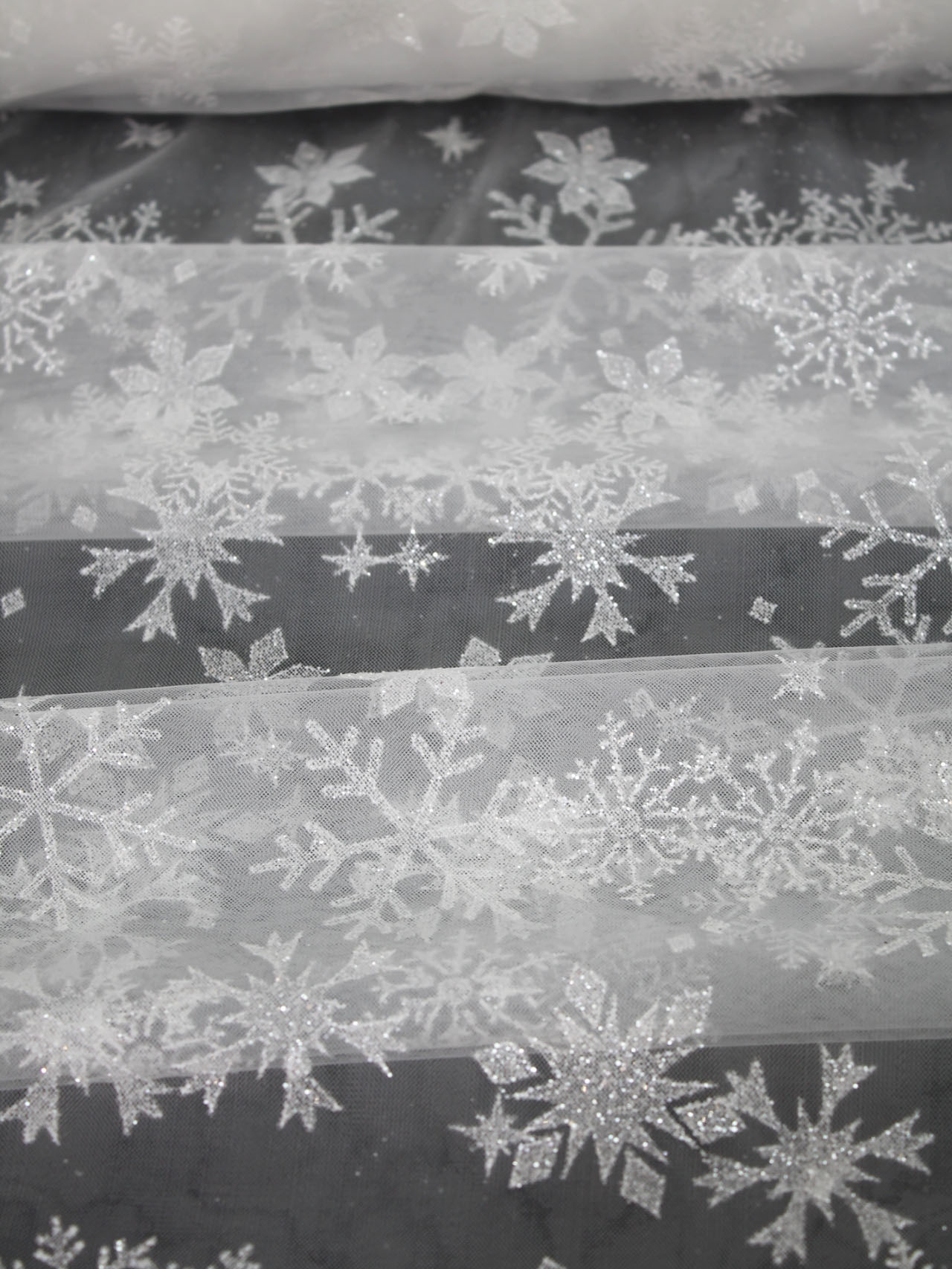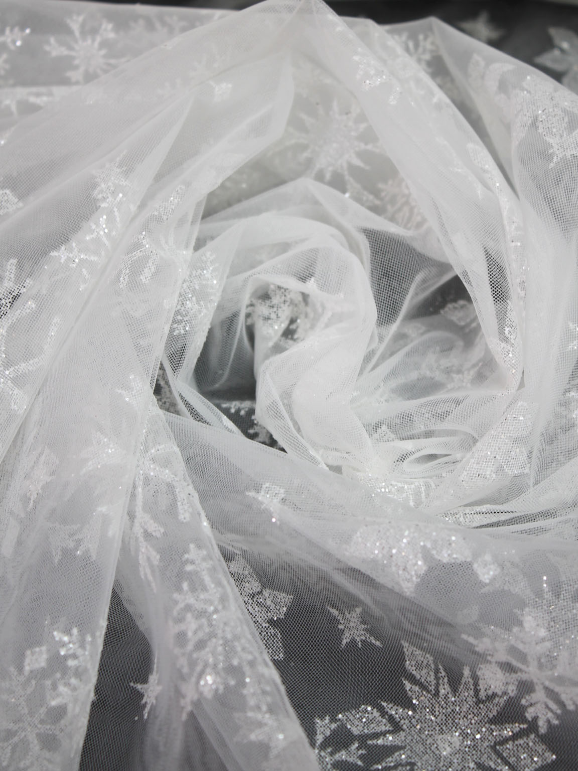 Сетка фатиновая снежинки с глиттером белый 1х3м. Цена за 1м погонный.