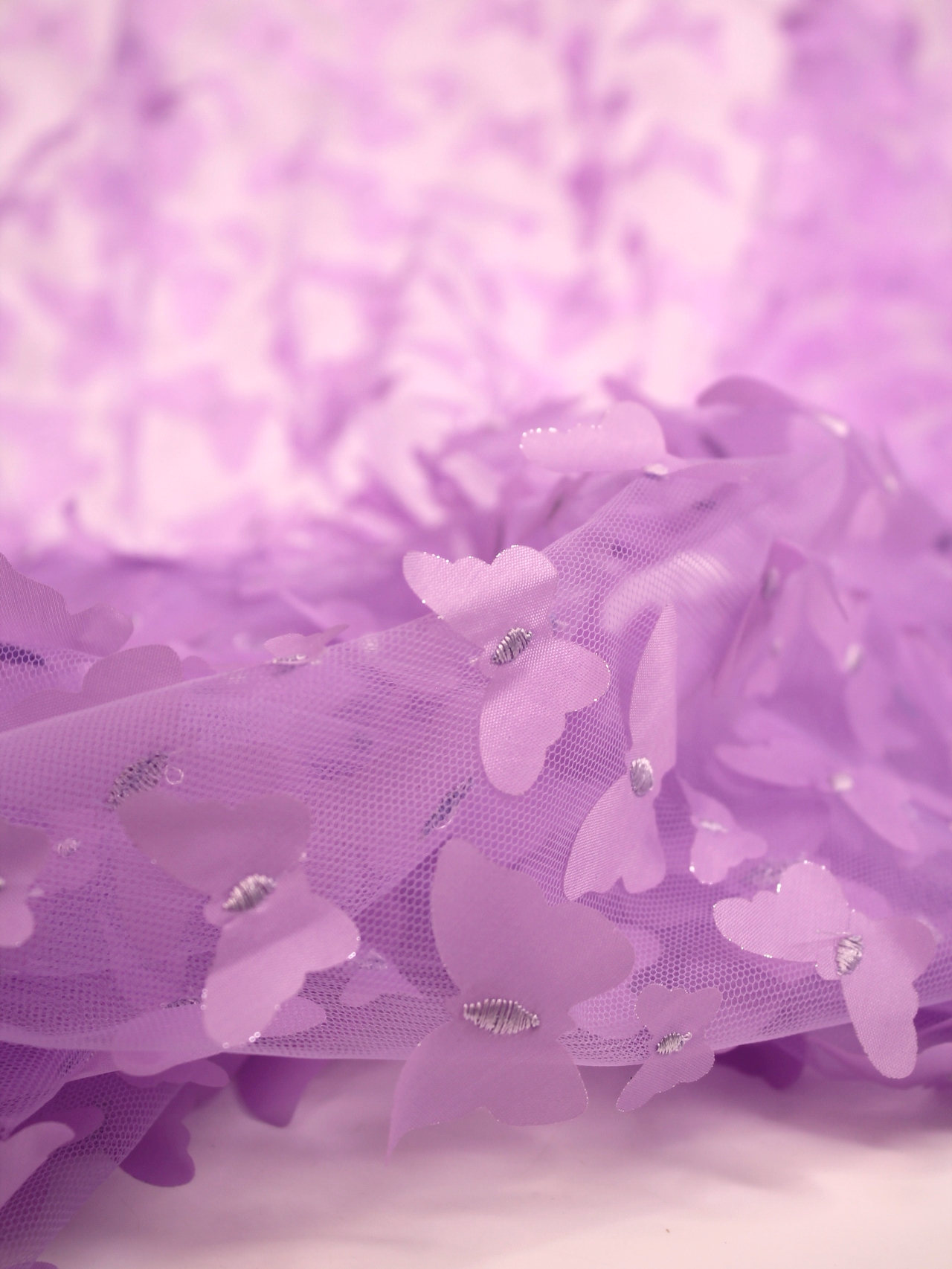 Сетка фатиновая с 3D рисунком (бабочки) сиреневый 1х1.5м арт. 0003D-007