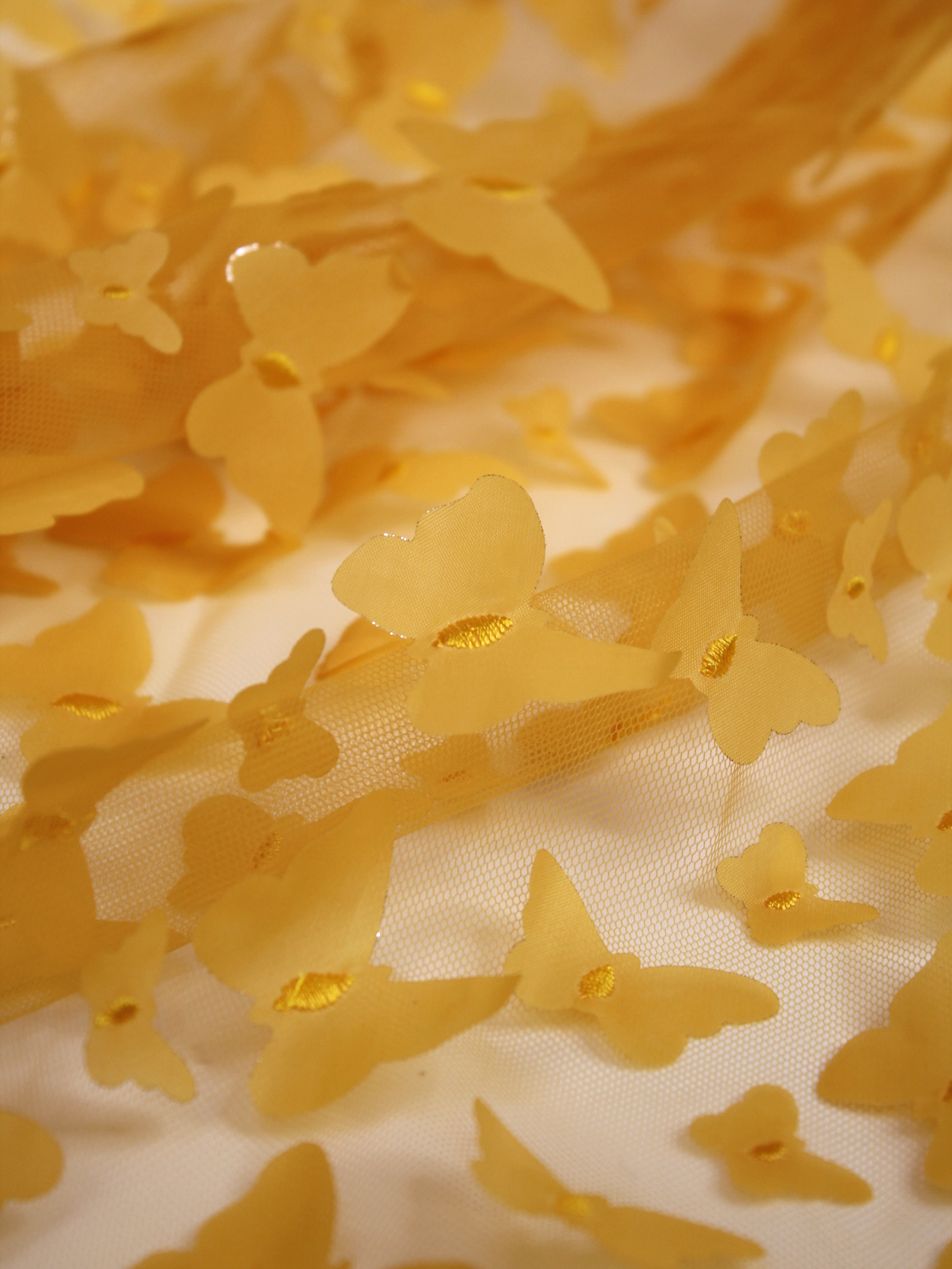 Сетка фатиновая с 3D рисунком (бабочки) золотистый 1х1.5м арт. 0003D-010