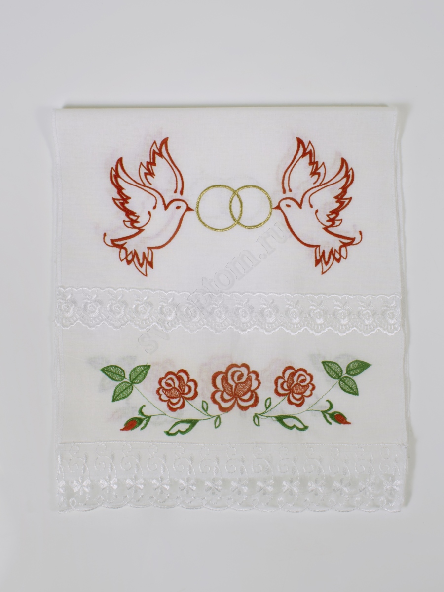 Рушник свадебный с натурального хлопка с вышивкой с голубями и цветами арт.070-023